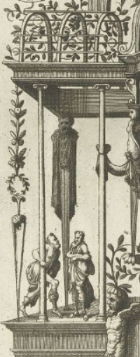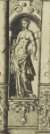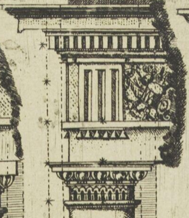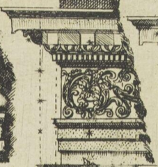 A type of bracket or corbel (often scroll-shaped) that projects from a wall to support a structure above it, like a shelf, cornice, or a sculpture.