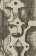An incised, but not cut, rivet hole. These will look like the outline of a circle, but will be the same color as the strapwork or other material they are drawn on.