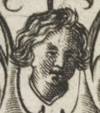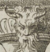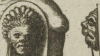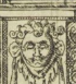 An ornamental mask shaped like a satyr’s head. They have horns, pointed ears, curly hair and a beard.