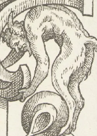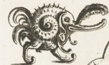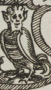 A grotesque, caricature-like creature with a mix of human and animal features.