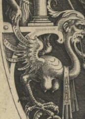 A legendary creature with the body, tail, and back legs of a lion and the head and wings of an eagle, with its talons on the front legs.