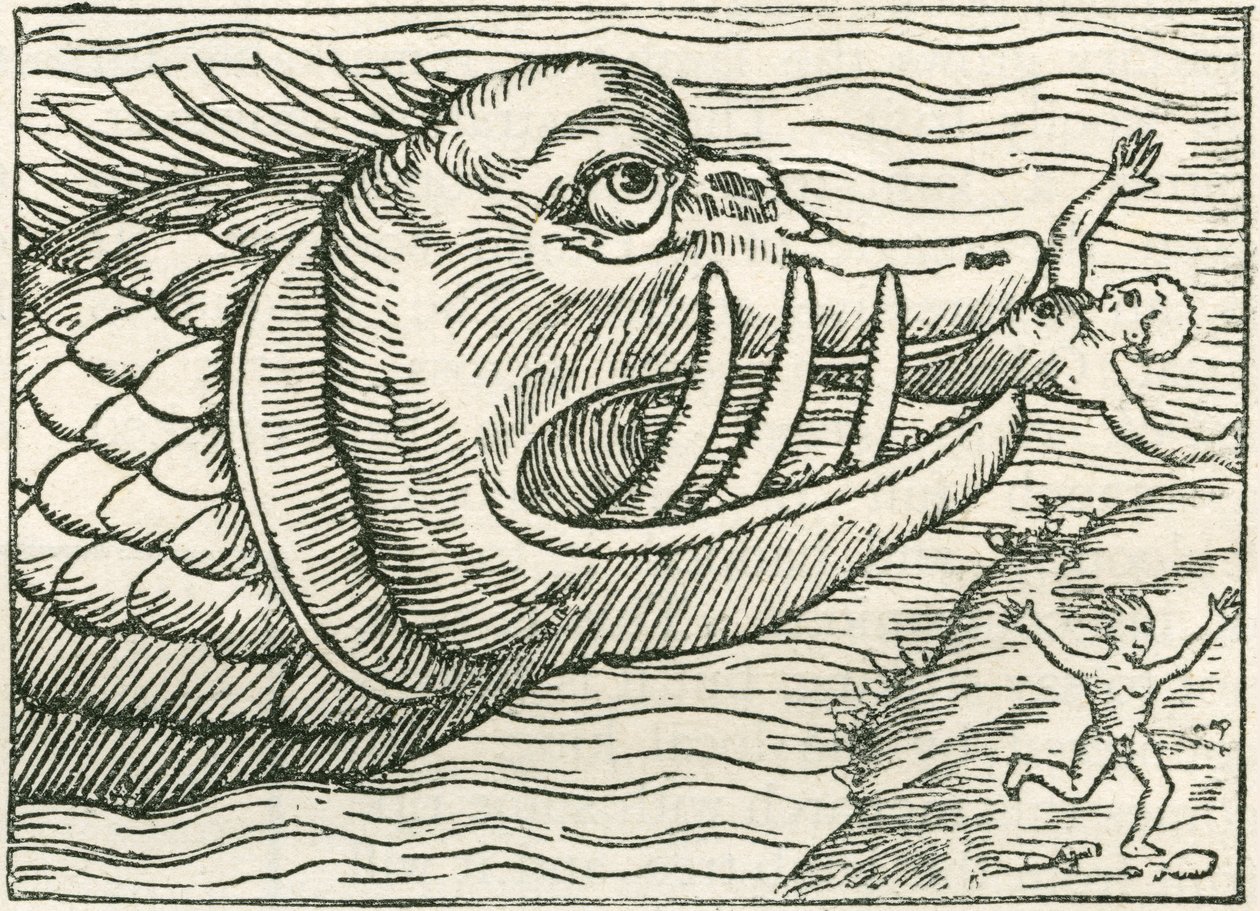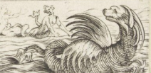 A monstrous creature of immense size that dwells in the sea and is portrayed as a threat to man and ships. These can include various sea serpents, monstrous whales, or dragons that are not otherwise identifiable as a specific sea monster, such as a hippocampus.