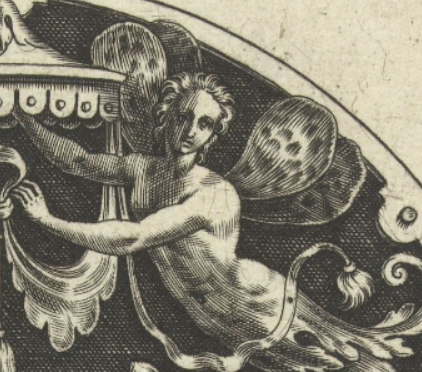 A fabled marine creature with the head and upper body of a man and the tail of a fish