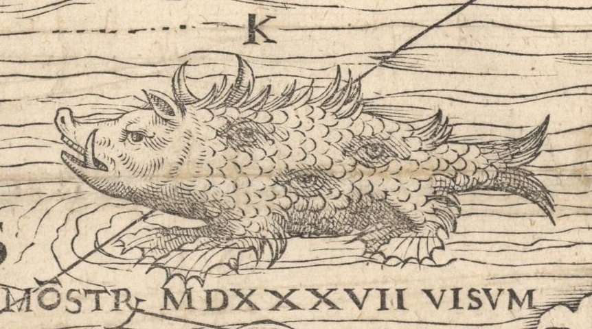 A sea-dwelling mythological creature, described as hog-headed, toothed, and boar-tusked.