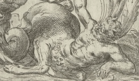 An evil spirit or devil, depicted with a blend of human and animalistic features.