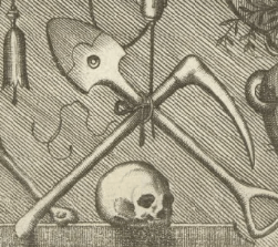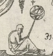 The two sticks the man is holding; an instrument for drawing circles and arcs.
